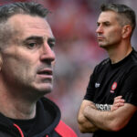 D’éirigh Gallagher as mar bhainisteoir Dhoire, laethanta roimh chluiche ceannais Uladh in 2023, tar éis dá bhean chéile Nicola líomhaintí a dhéanamh faoi dhrochíde bhaile (domestic abuse).