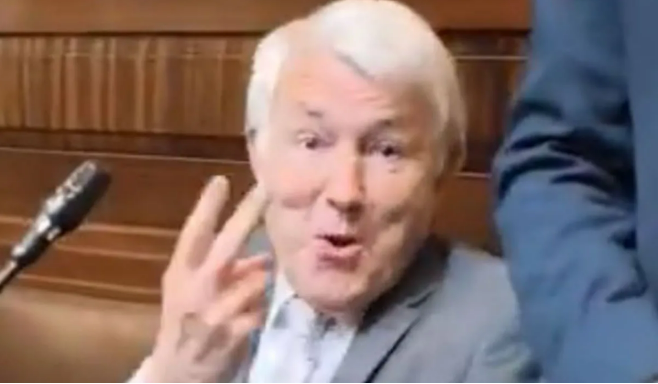 Léirigh comhartha an Uasail Lowry – atá imithe go víreasach – é ag ardú a dhá mhéar do Paul Murphy, i bhfíseán ón taobh istigh de sheomra na Dála tar éis an vóta.