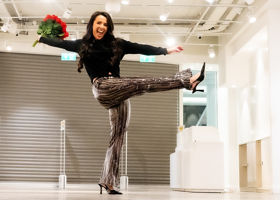 ‘Déarfainn go bhfuil mo stíl beagáinín aisteach. Caithim culaith spóirt den chuid is mó, ach uair sa tseachtain bím ag iarraidh íomhá iomlán nua a chur orm féin,’ a deir sí go gáireach.