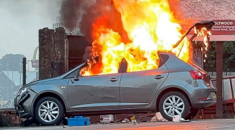 Cuireadh carr trí thine in aice le hionad níocháin gluaisteán mar chuid de roinnt tinte a thosaigh agóideoirí.