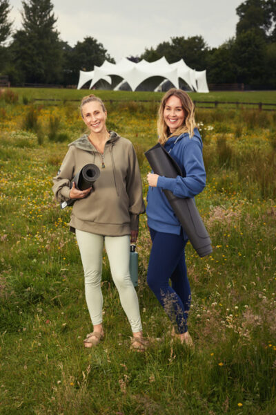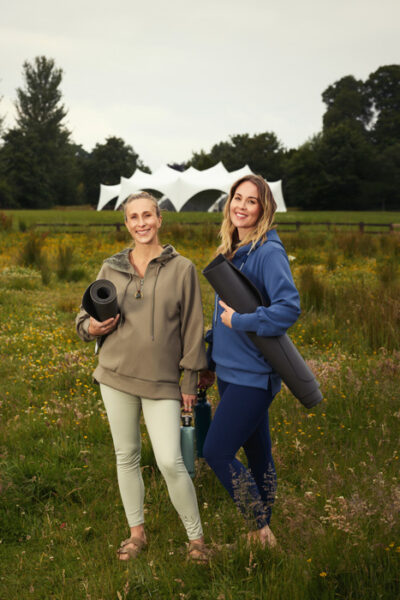 Is iad beirt deirfiúr ó Ghaillimh, Katy agus Alice Harrison, in éineacht le múinteoir yoga ón Iarmhí, Mary Gardiner, atá i gceannas ar an bhféile.