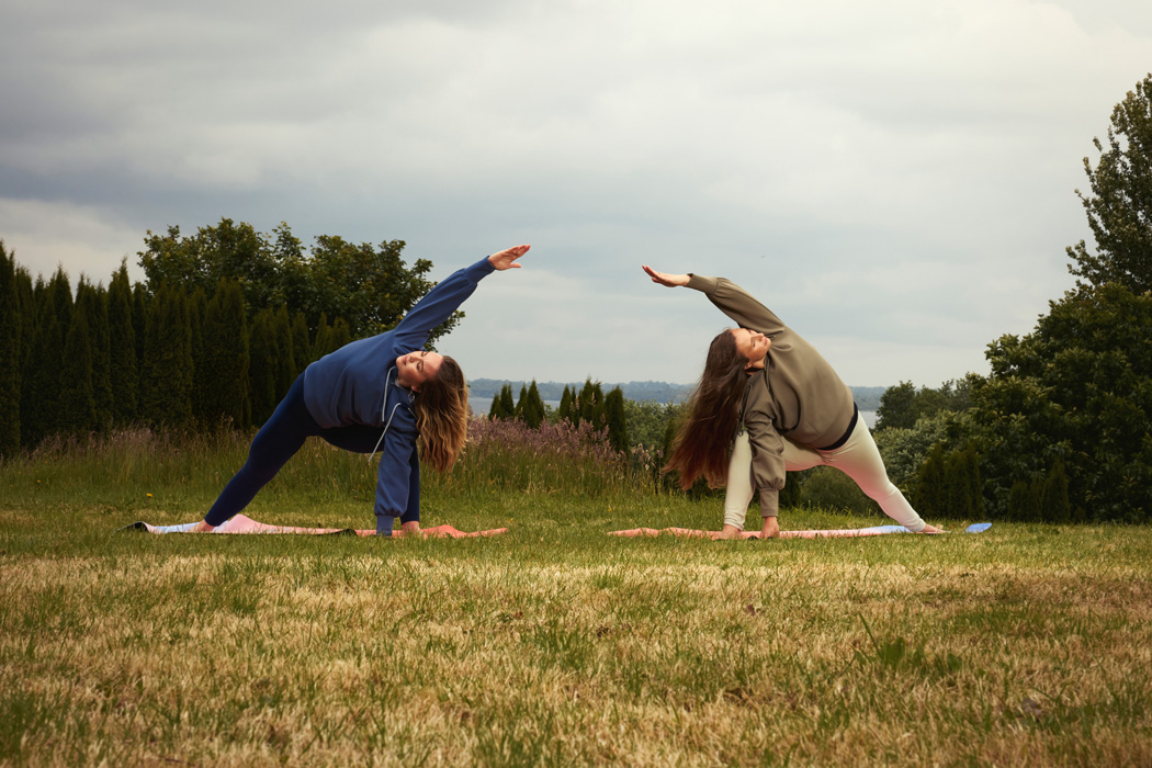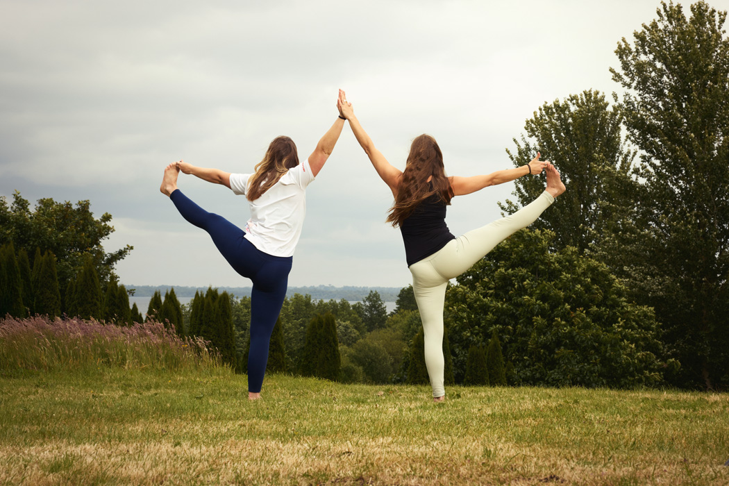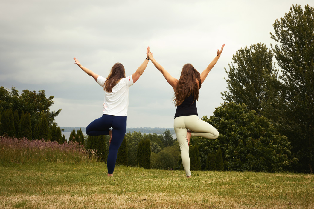 Tá fréamhacha láidre sa yoga ag na deirfiúracha. D’inis