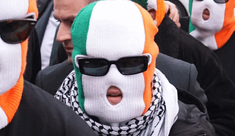 Bhí Mo Chara ag caitheamh balacláva trídathach, cosúil lena chomrádaí DJ Próvaí, a tháinig chun tacú leis.
