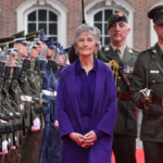 Chuir an tUachtarán nua Éireannach cumhacht i láthair trína stíl éadaí agus í ag siúl ar an gcairpéad dearg i gCaisleán Bhaile Átha Cliath, agus cóta corcra aimitis (amethyst) uirthi, le blús síoda chorcra agus brístí olann chorcra.