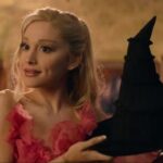 Bhí Ariana Grande buailte as a riocht ar dtús ach tháinig sí chuici féin arís, ag leanúint ar aghaidh ar an gcairpéid le hErivo ag coinneáil lámh chosanta timpeall uirthi.