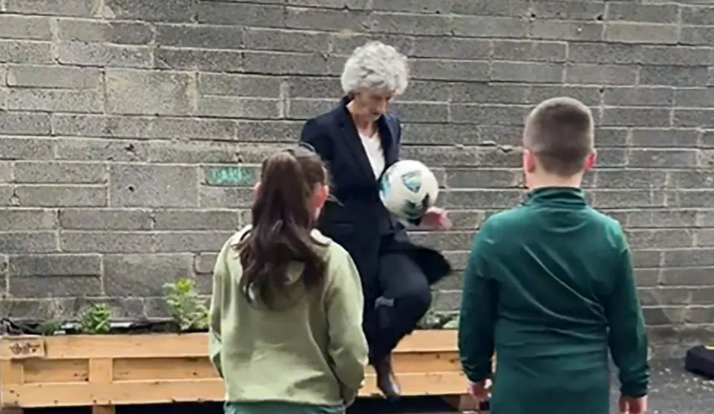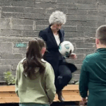 Ar fhíseán: Catherine Connolly ag taispeáint a scileanna peile