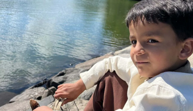 Pobal i mbrón faoi bhás Antony, 7 mbliana d’aois, ag imirt bouncy castle