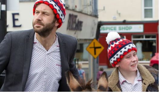 Tá David Rawle, an Moone Boy, agus Chris O’Dowd ar ais sa Small Town