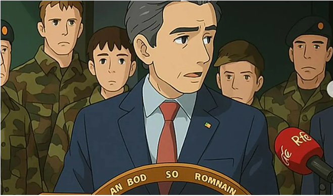 Náire ar Simon Harris as focal gáirsiúil i nGaeilge a úsáid ar líne