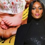 Mac ag an supermodel Naomi Campbell ag aois 53 bliain